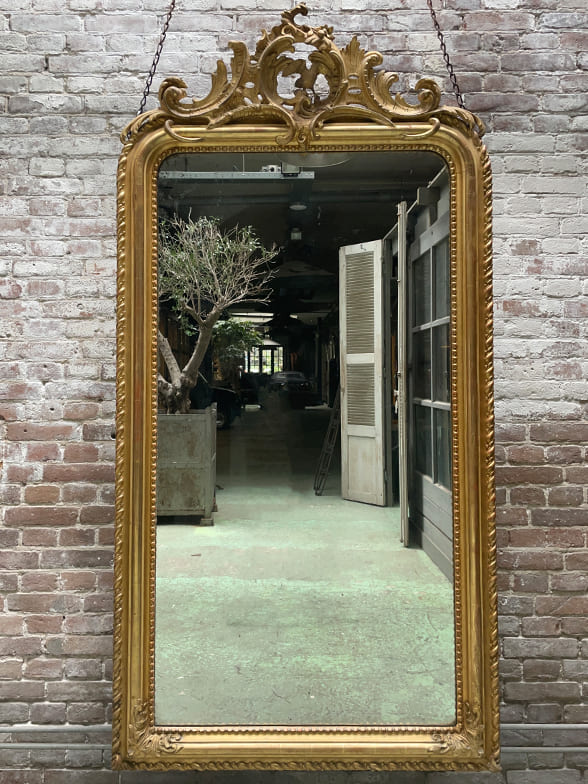 Voor deze spiegels uit de 19e eeuw is de vormentaal uit de 18e eeuw dé inspiratiebron. Zo kan je een spiegel uit de 19e eeuw hebben die gemaakt is in de stijl van Louis XV of van Louis XVI maar die niet uit de tijd is van de betreffende koning.